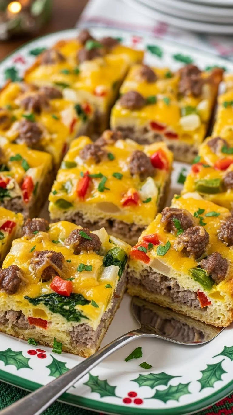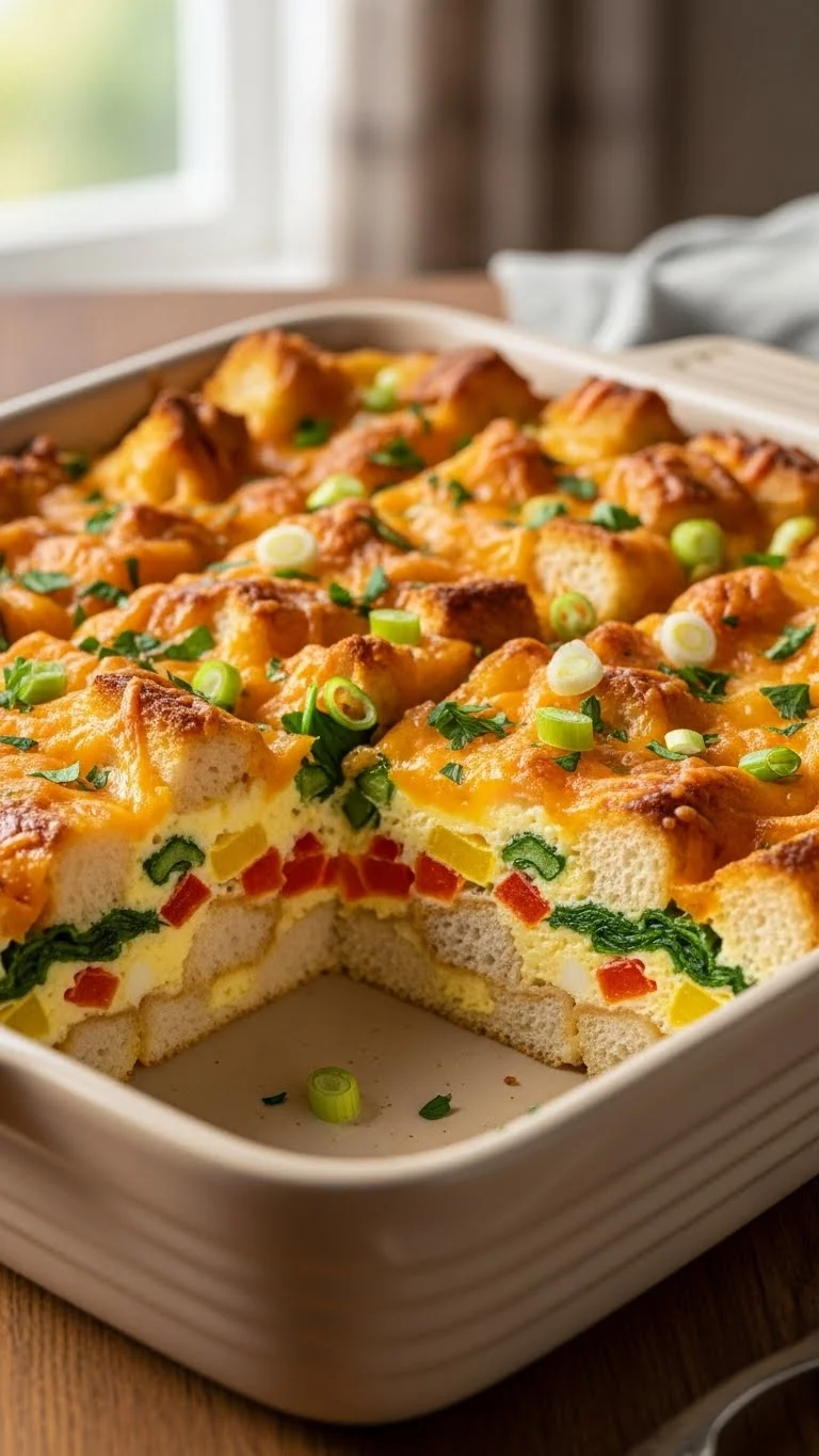 Cut into squares and serve warm. Garnish with fresh herbs. Pair with fruit or pastries. Serve directly from dish for communal brunch.