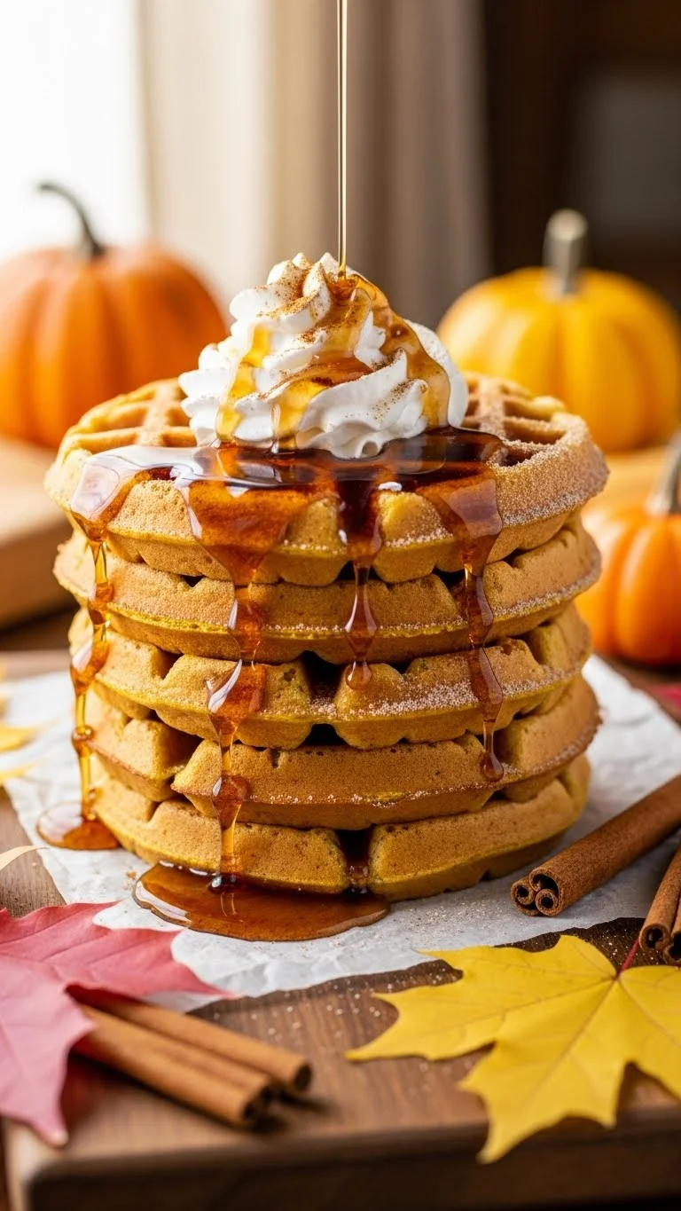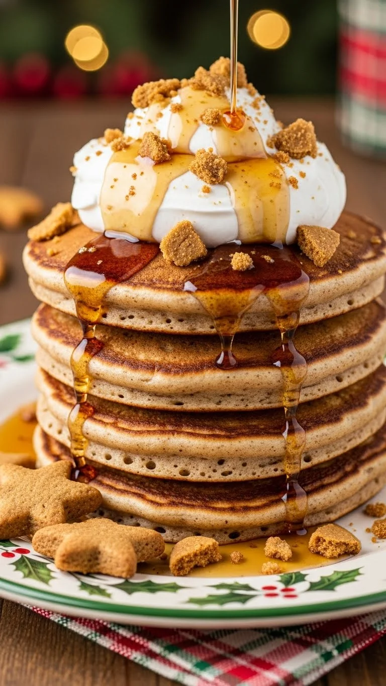 Stack on a festive plate. Drizzle with maple syrup and whipped cream. Sprinkle with crushed gingerbread cookies. Garnish with powdered sugar or cinnamon. Pair with hot coffee or cocoa.