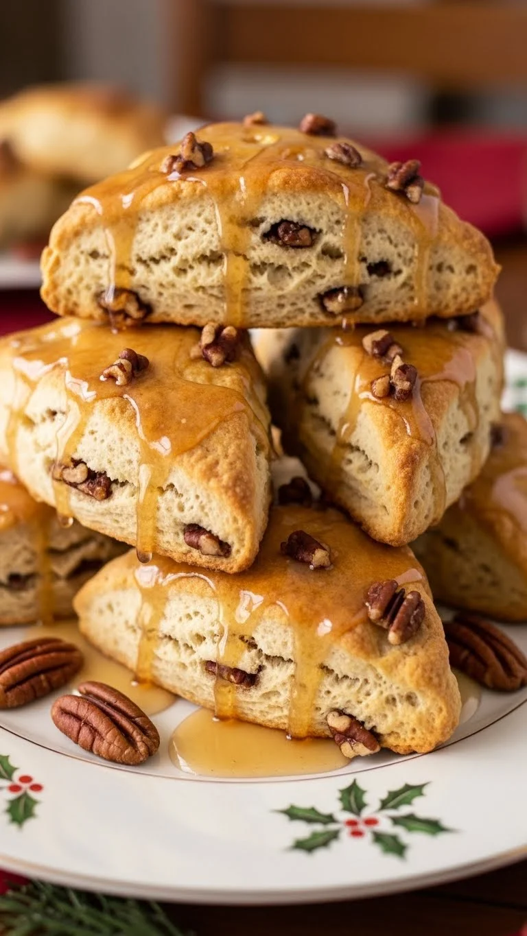 Serve stacked on a festive plate. Top with whipped cream, powdered sugar, or maple syrup. Garnish with a sprinkle of nutmeg. Pair with coffee, tea, or holiday cider. Slice neatly for presentation.
