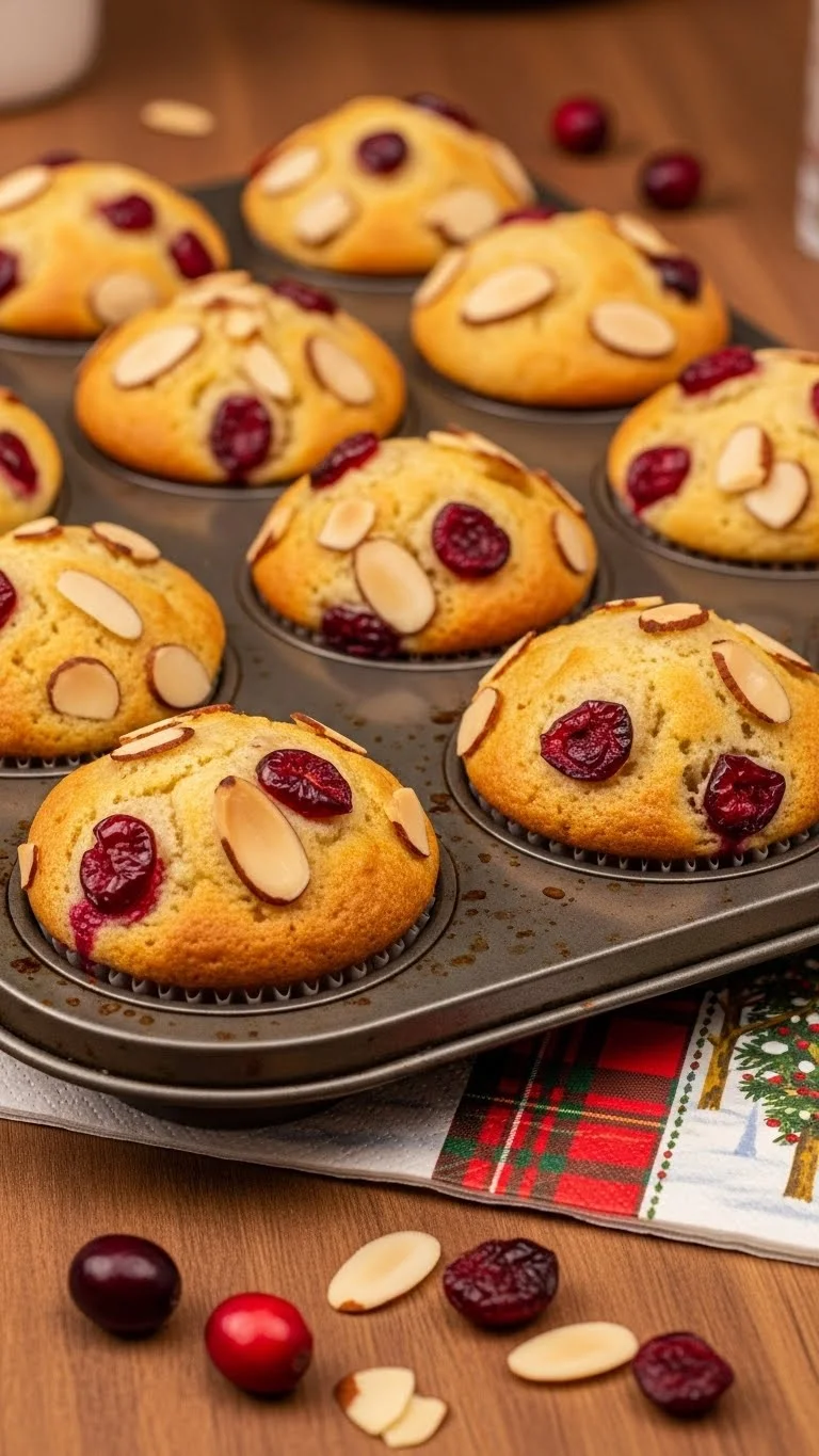 These muffins are fruity, nutty, and moist, perfect for brunch or as a snack. Cranberries add tartness while almonds provide crunch. They are easy to bake and display beautifully for a holiday table.