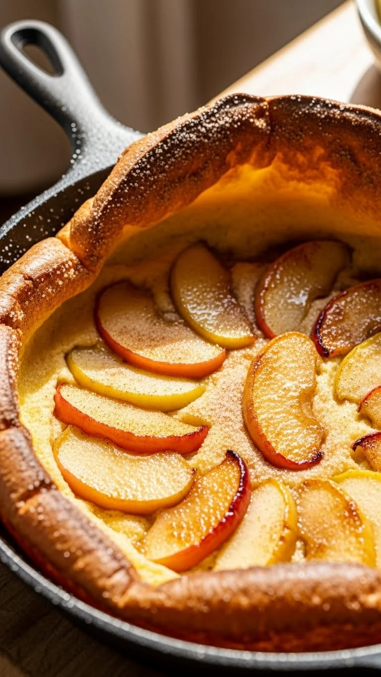 This Dutch baby pancake is dramatic and flavorful. Light, puffed edges contrast with soft caramelized apples in the center. Dusting of cinnamon sugar adds a festive touch. It’s a stunning brunch item with minimal effort.