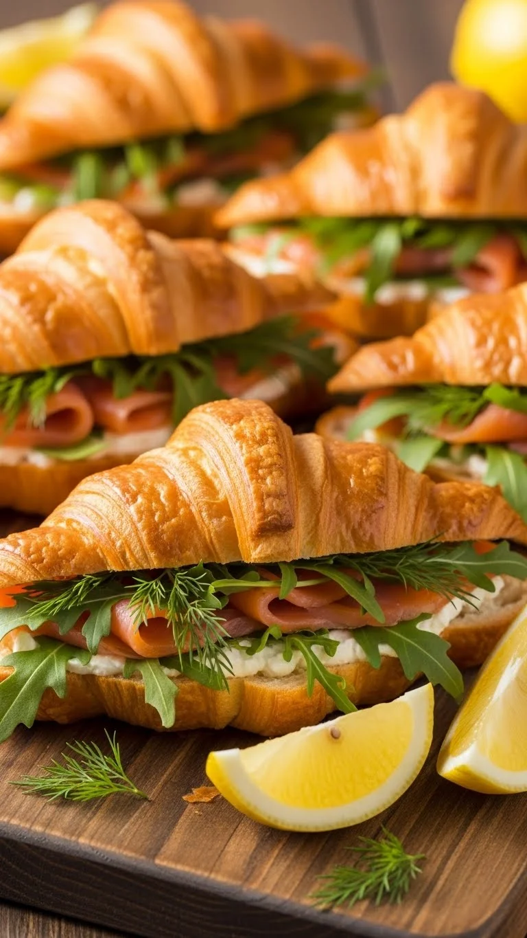 These sandwiches combine flaky, buttery croissants with savory smoked salmon and creamy cheese. The fresh arugula and dill brighten the flavors. They are elegant, satisfying, and perfect for a brunch that feels special without heavy preparation.