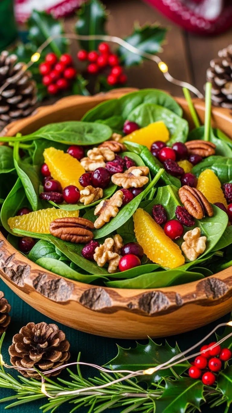 2. Mix with spinach, cranberries, orange segments, and almonds.