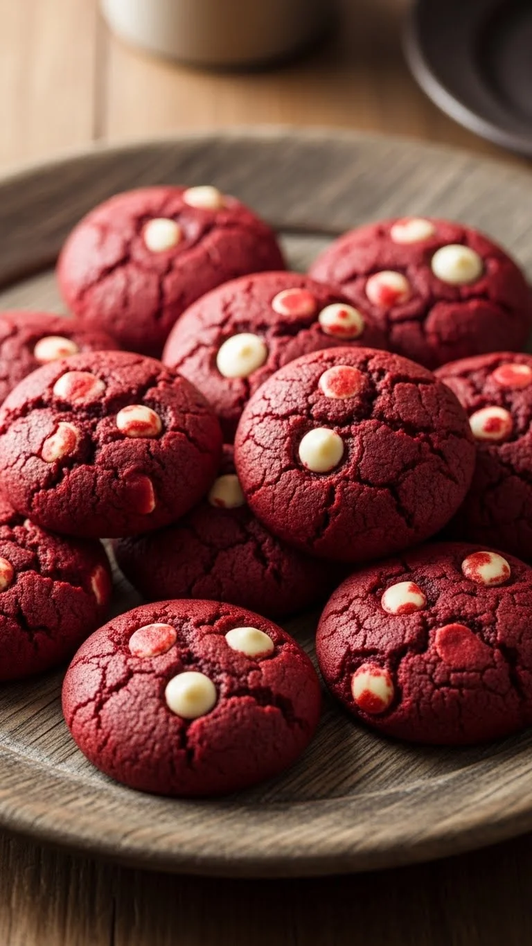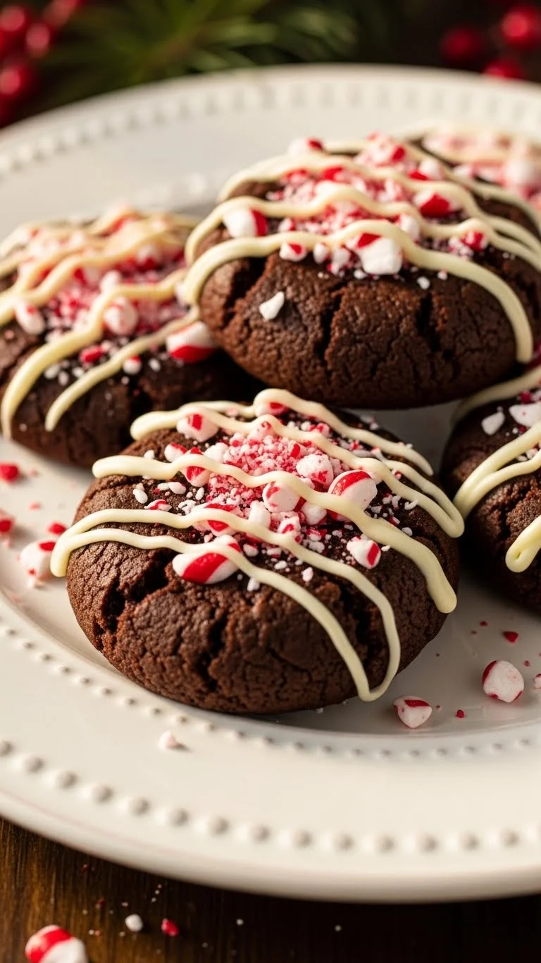 These peppermint bark cookies are a festive blend of chocolate and mint, offering crunchy texture from candy pieces and smooth chocolate layers. They’re visually striking with red and white accents, adding a cheerful touch to holiday cookie trays.