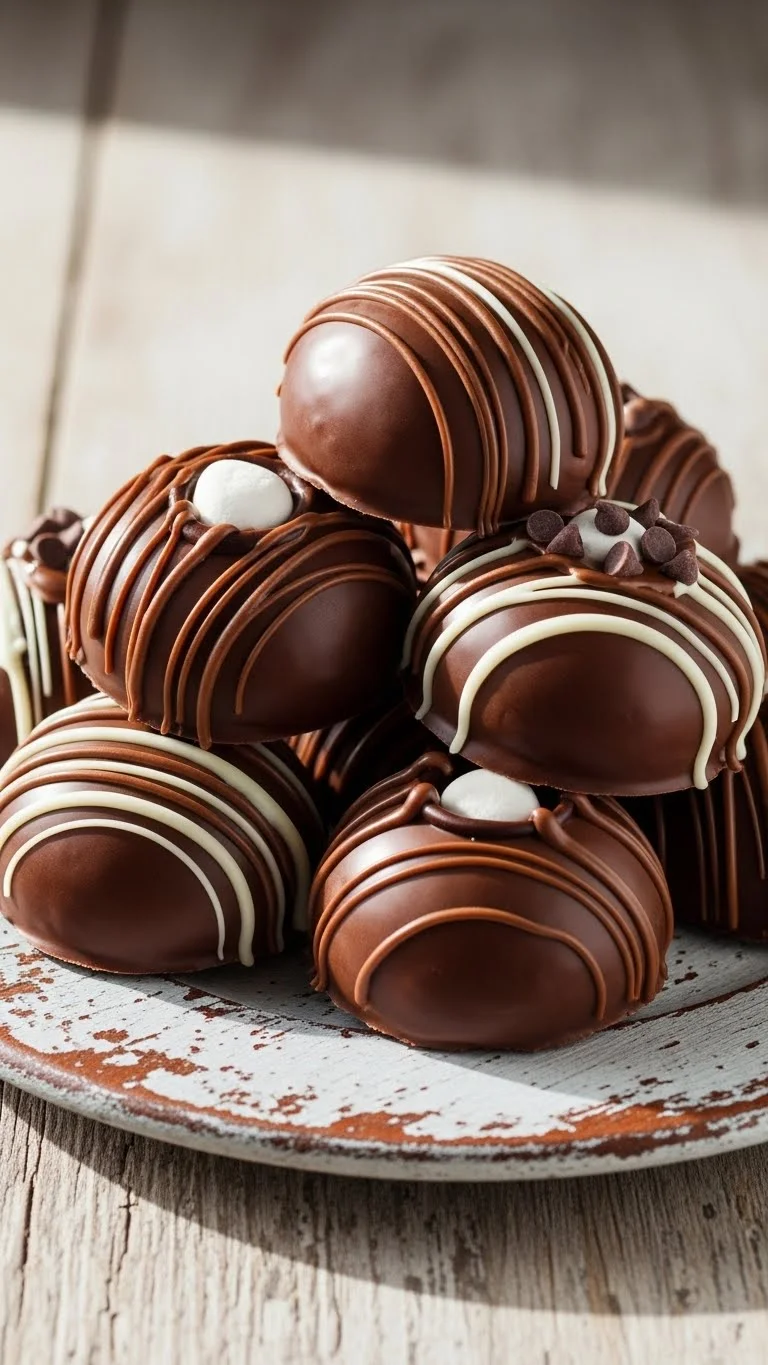These cookies are inspired by hot chocolate bombs, combining chocolate, cocoa, and marshmallow inside a crisp cookie. They’re interactive, fun, and add a wow factor to holiday treats.