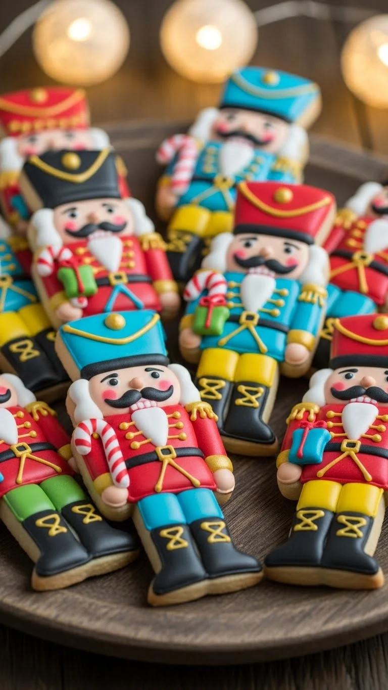 Nutcracker cookies are detailed, vibrant, and perfect for holiday displays. Each cookie becomes a festive decoration as well as a tasty treat for holiday parties.