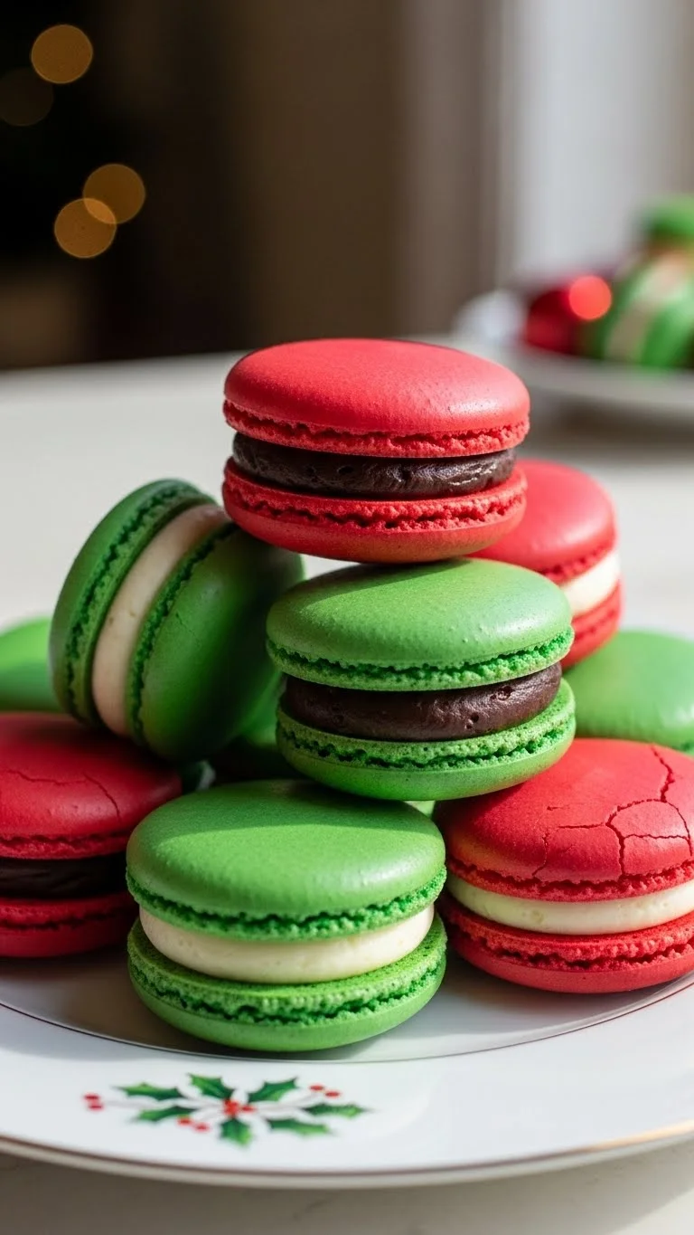 Holiday macarons are delicate, colorful, and sophisticated. Their crisp exterior and soft filling make them a luxurious addition to any Christmas cookie collection.