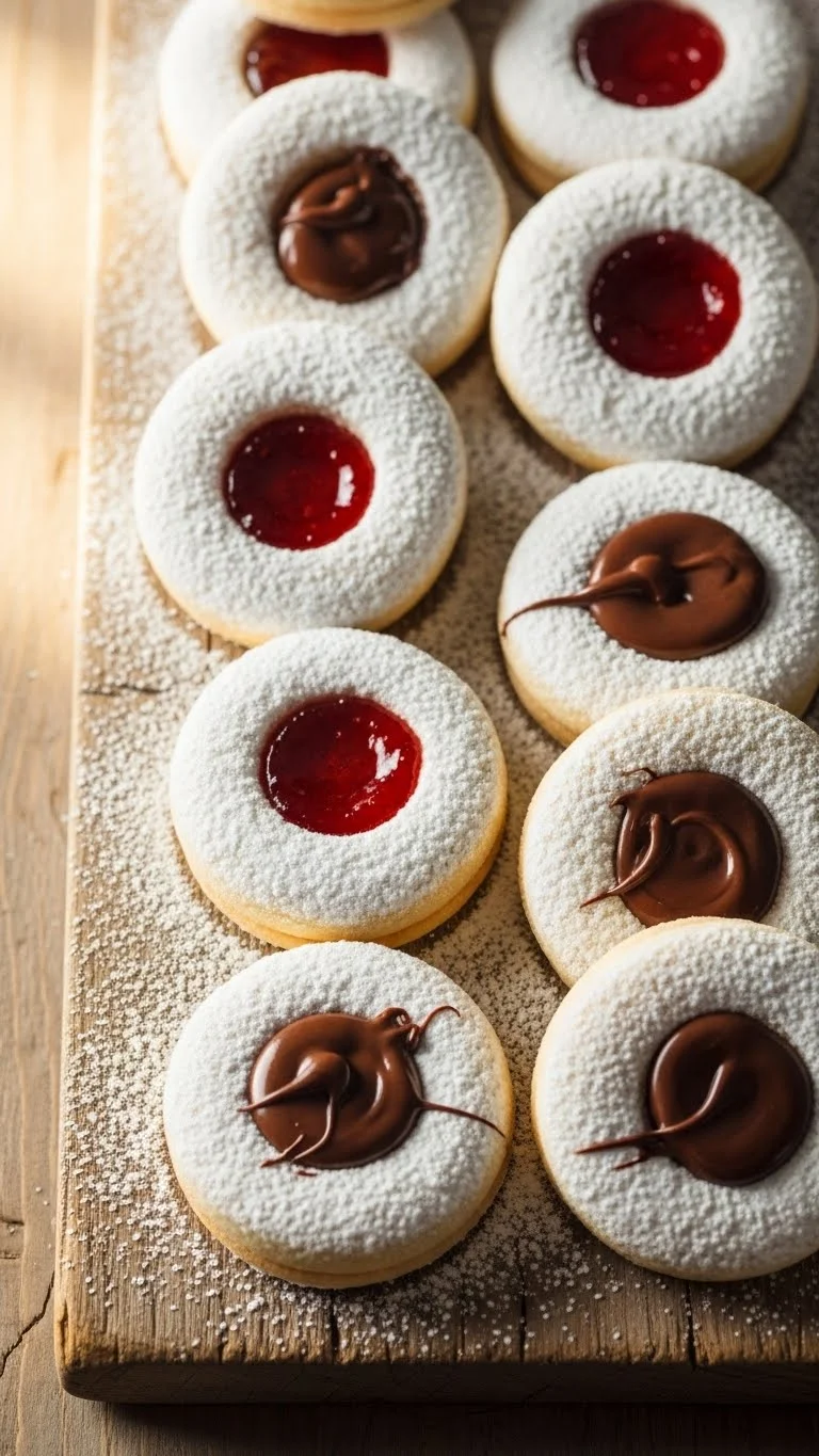 Dust lightly with powdered sugar. Arrange in a holiday tin or on a serving tray. Perfect for afternoon tea or as a colorful addition to a cookie platter.