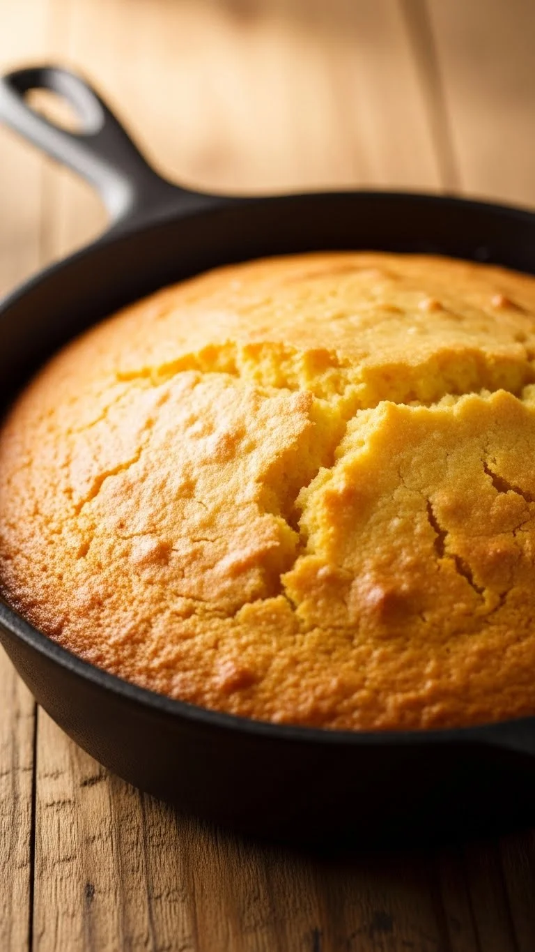 Slice into wedges and serve warm with butter. Pairs beautifully with soups or roasted meats. Add honey on the side. The skillet presentation gives a cozy holiday look. Works well on a buffet table.