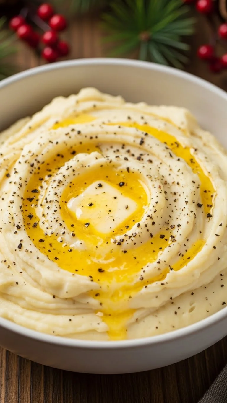 Top with extra butter or drizzle with warm gravy. Sprinkle with chopped chives for a pop of color. Serve in a wide bowl so the steam rises beautifully at the table. Pair with roasted meats or vegetable sides. You can also add roasted garlic cloves for a richer holiday flavor.
