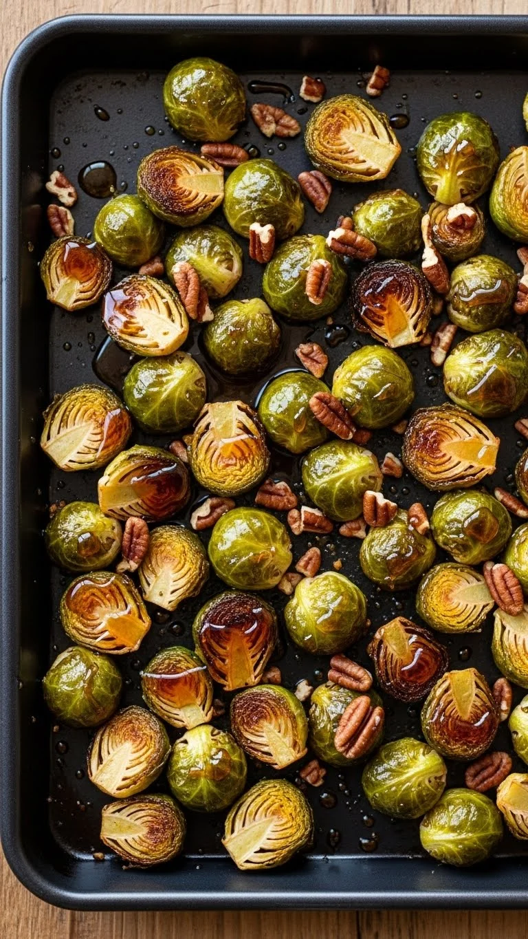 These Brussels sprouts roast until lightly crisp on the outside and tender inside, with a touch of sweetness from maple syrup. They’re quick to prepare and add a festive, colorful side to the table. Even guests who avoid Brussels sprouts often enjoy this holiday version.