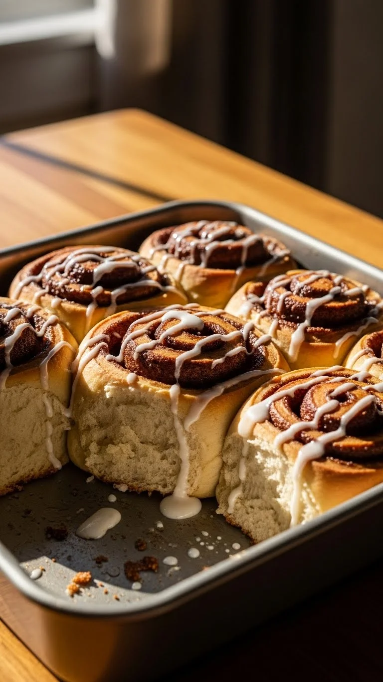 Serve warm so the icing melts softly. Sprinkle cinnamon on top. Pairs perfectly with coffee or cocoa.