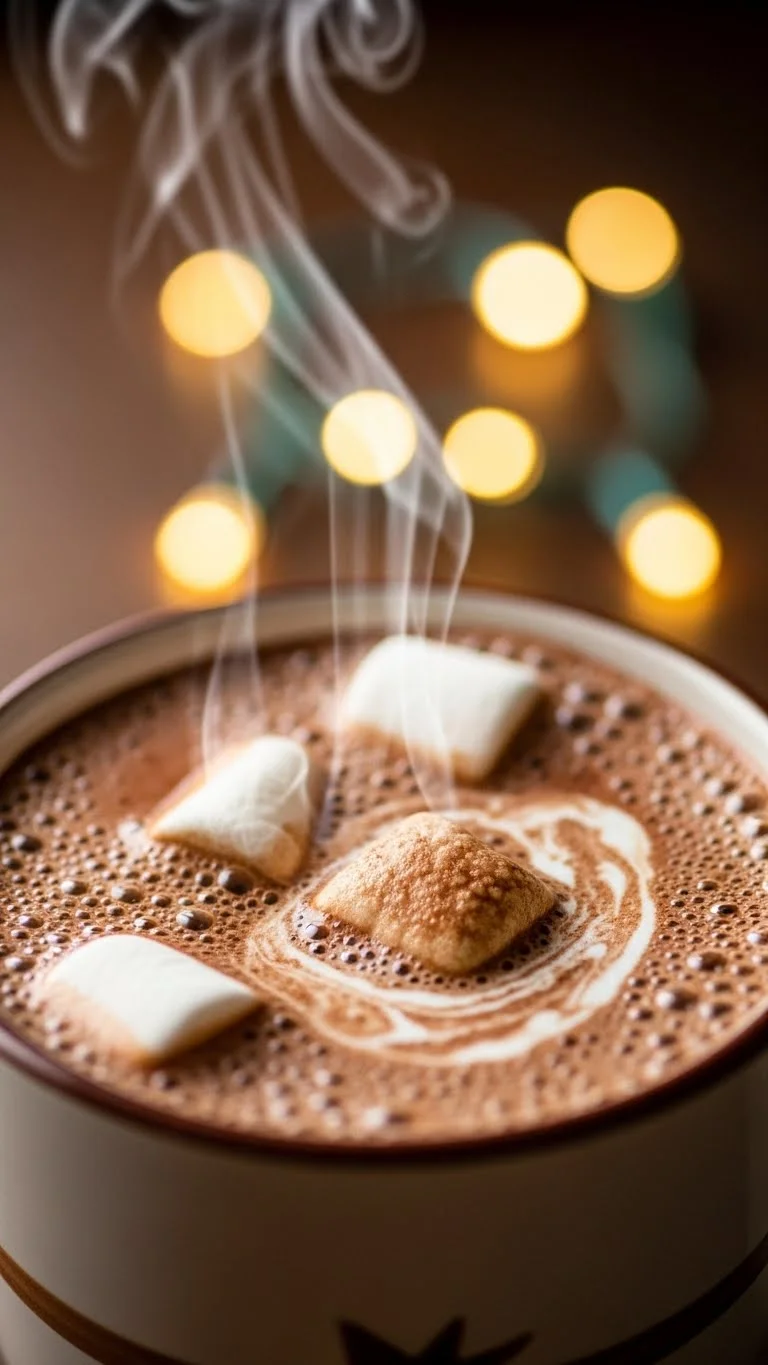 Top with marshmallows or whipped cream. Sprinkle cocoa powder on top. Serve in festive mugs for a Christmas feel.