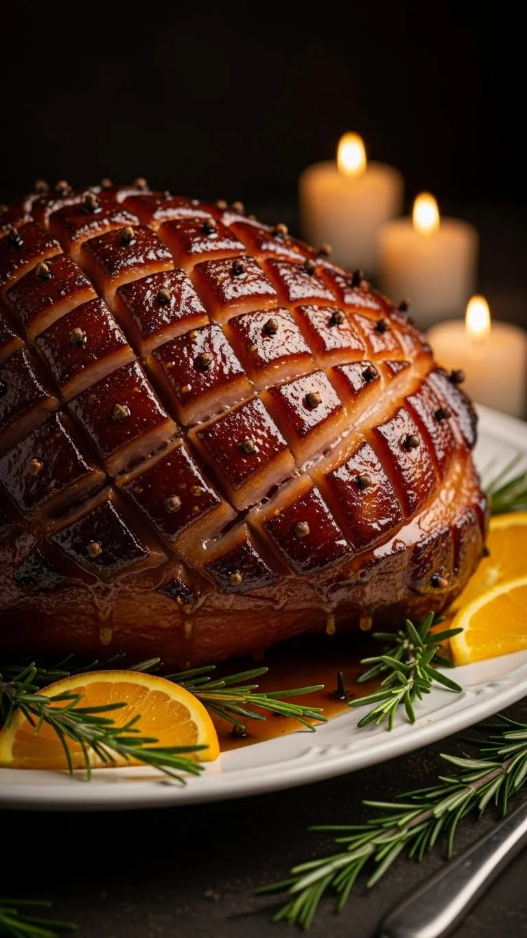 Serve with mashed potatoes, roasted vegetables, or soft dinner rolls. Pour extra warm glaze over the slices. Garnish with fresh rosemary and orange slices for a classic Christmas table look.