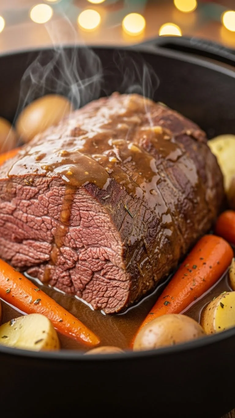 This comforting pot roast has been a holiday staple for generations, filling the home with hearty aromas and slow-cooked richness. Each bite is tender, juicy, and infused with simple flavors that feel familiar and warm, making it the perfect main dish for a cozy Christmas dinner.