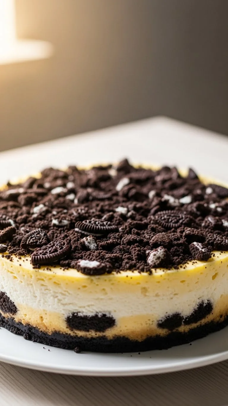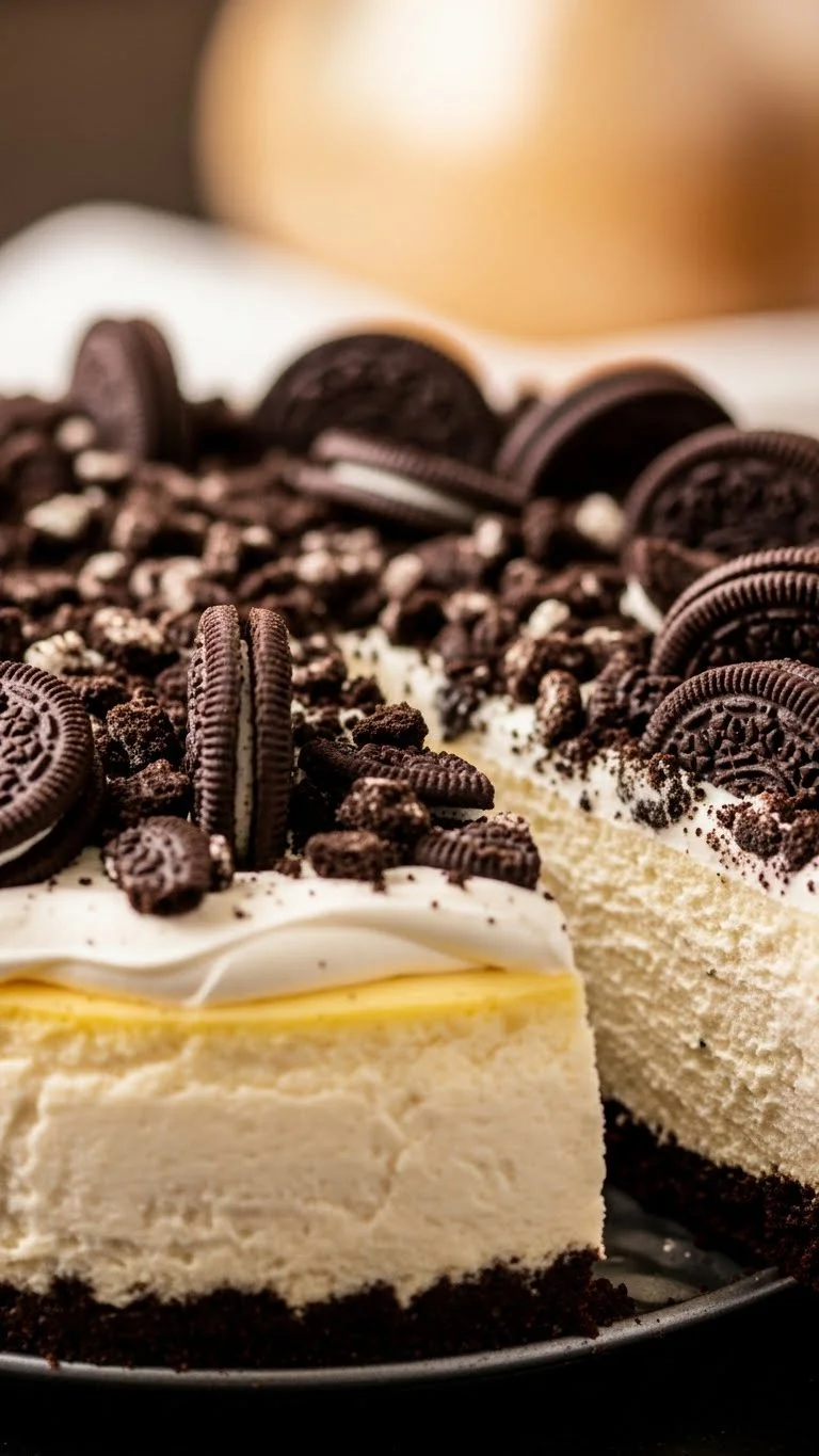 Crushed chocolate sandwich cookies throughout the cheesecake and on top make this a playful and indulgent dessert loved by all ages.