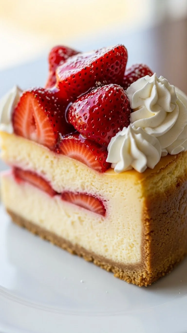 Fresh strawberries combined with creamy cheesecake and a light crust create a delicate dessert that feels fresh and romantic.