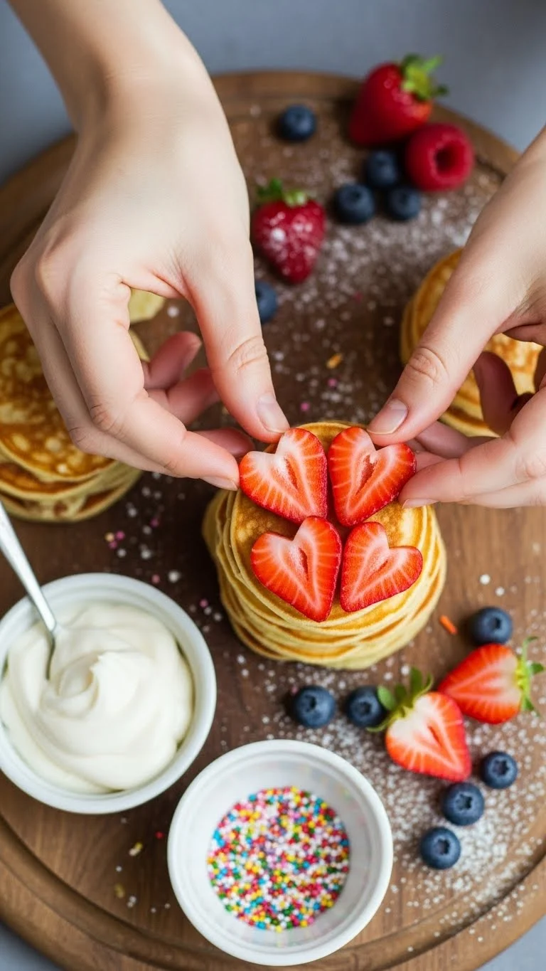 - Heart-shaped pancakes, waffles, or sandwiches using cookie cutters