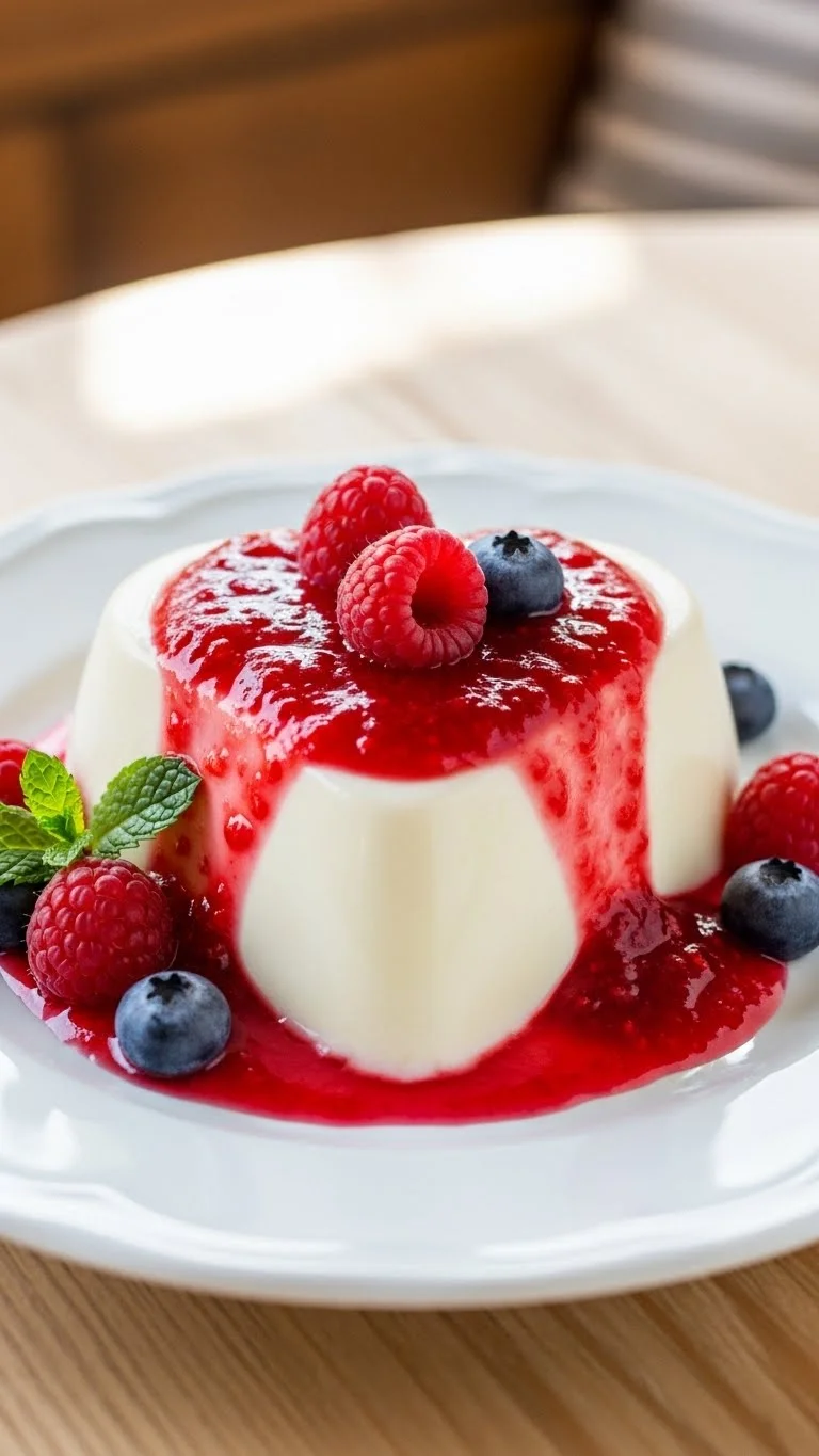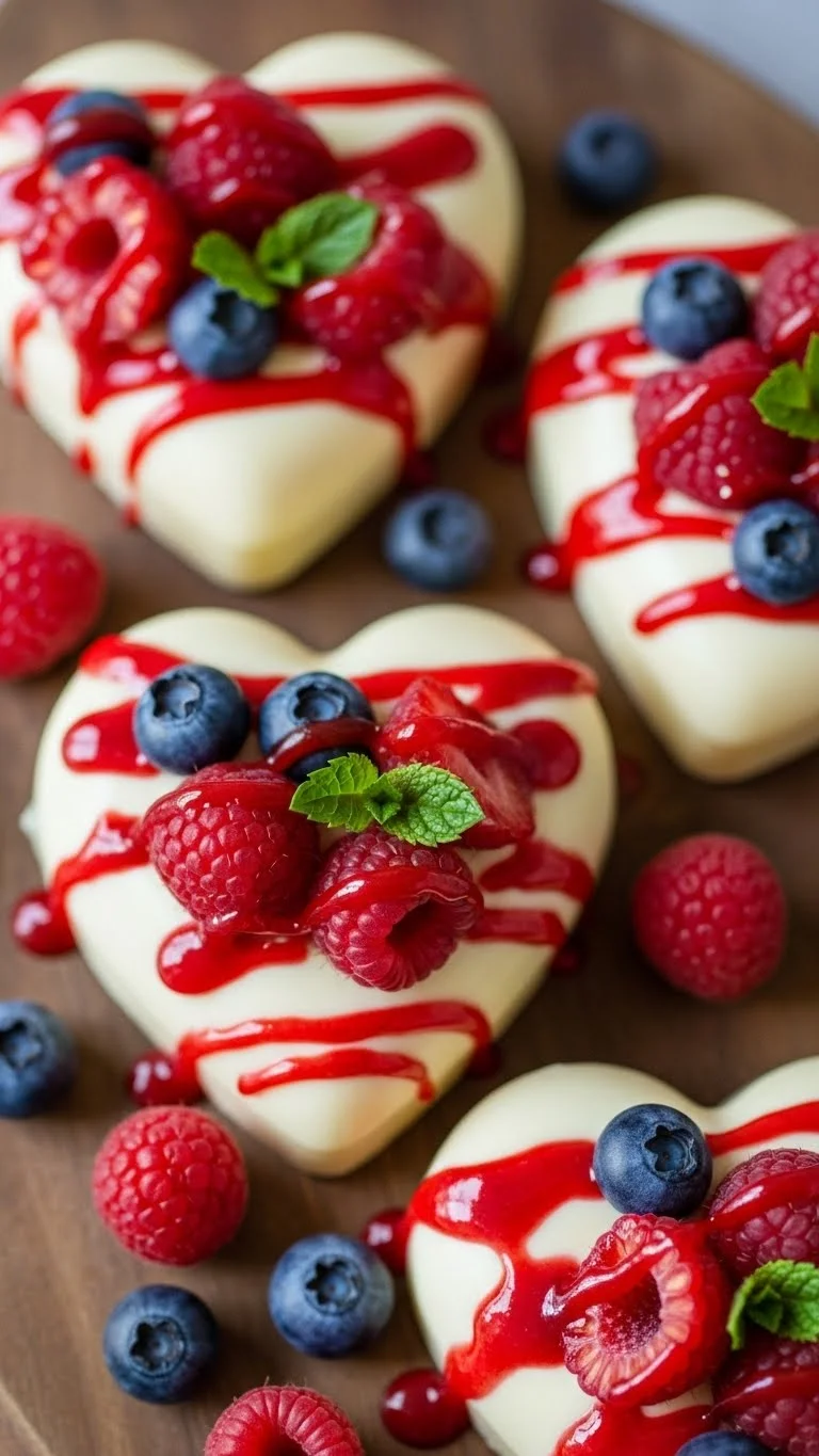 Top with raspberry sauce, fresh berries, or mint. Serve chilled in heart-shaped molds for visual appeal.