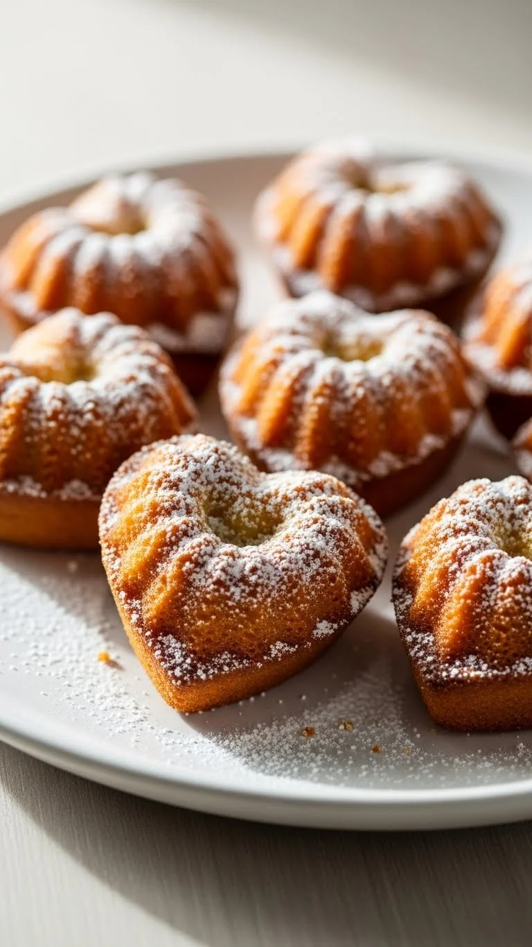 Soft almond-flavored cakes in heart shapes are simple yet charming for Valentine’s desserts, offering nutty flavor and tender texture.