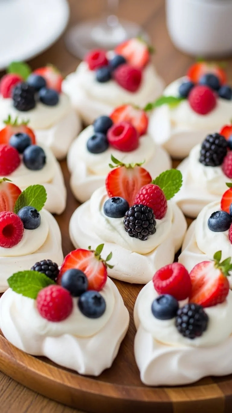 1. Heart-Shaped Mini Pavlova Cakes