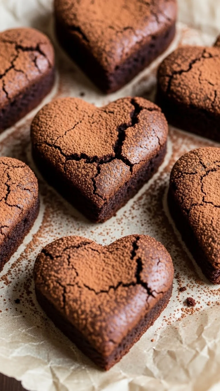 Fudgy brownies cut into heart shapes make a simple yet indulgent Valentine’s treat. Their rich chocolate flavor contrasts perfectly with a dusting of powdered sugar or cocoa for a professional look.