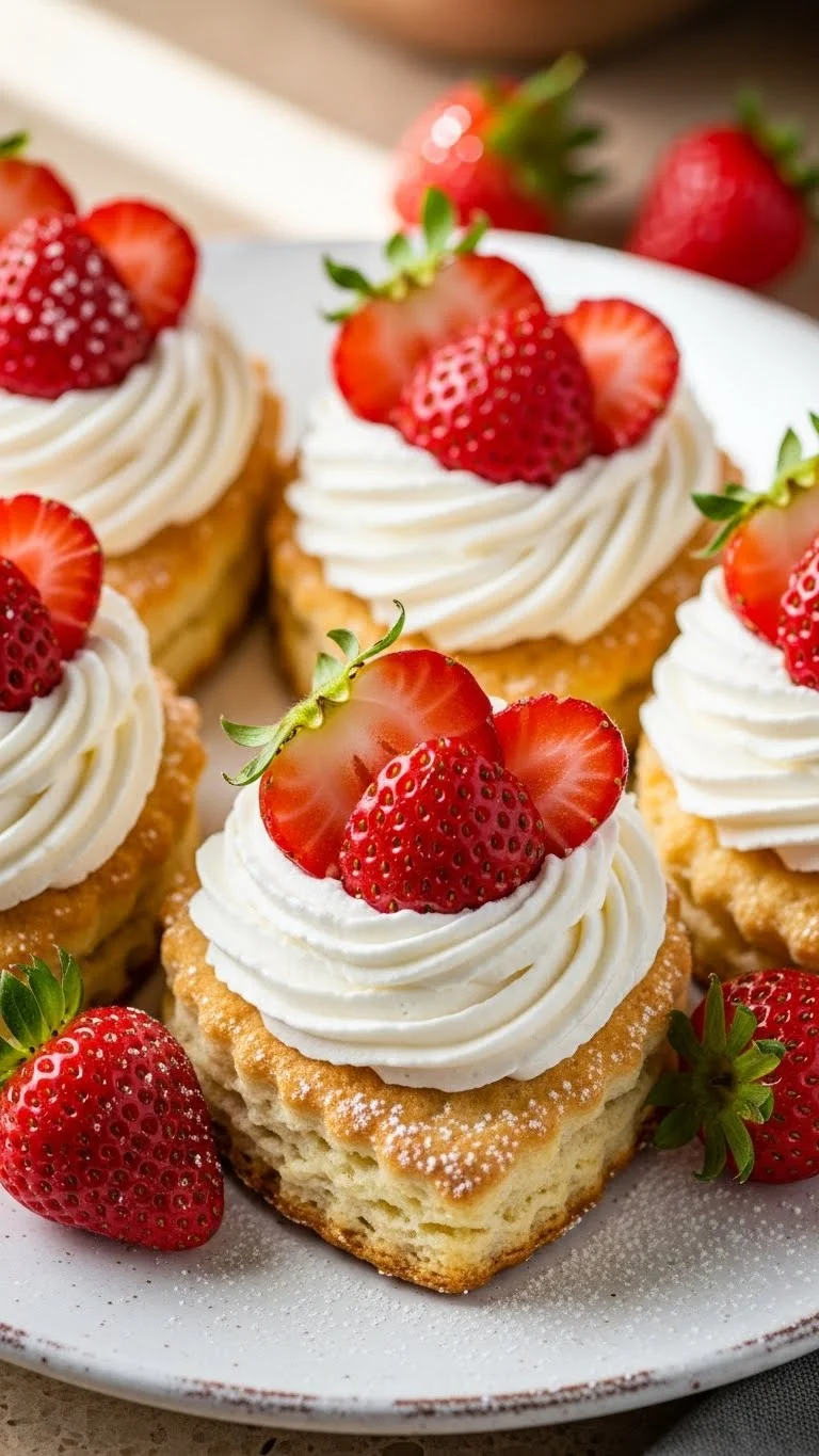 Mini shortcake cups with strawberries are light, fruity, and perfect for Valentine’s parties or gifts.