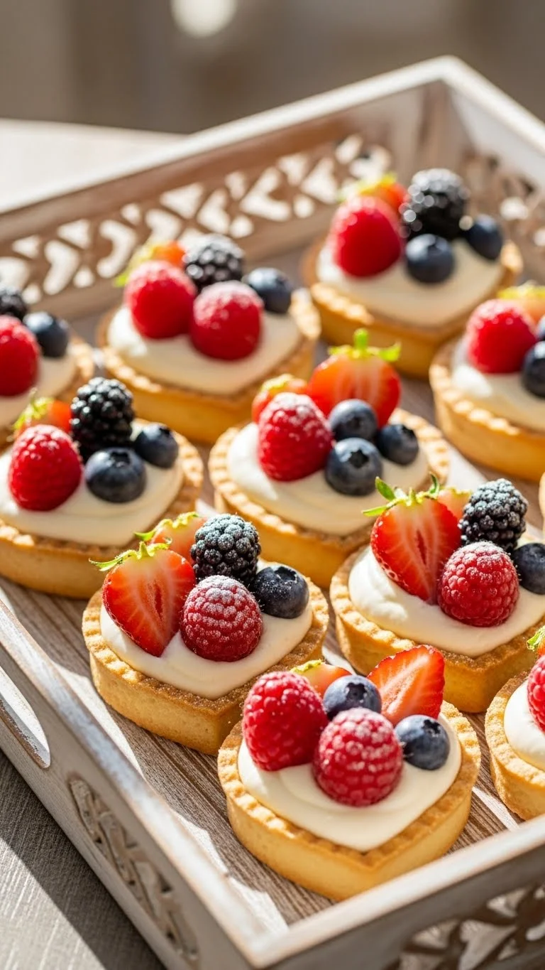 1. Heart-Shaped Mini Tarts with Cream and Berries