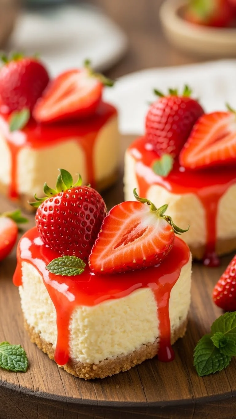 Creamy cheesecake in a heart-shaped mold paired with sweet strawberry topping creates a dessert that’s both decadent and festive. Individual servings make them perfect for gifting or a romantic table.